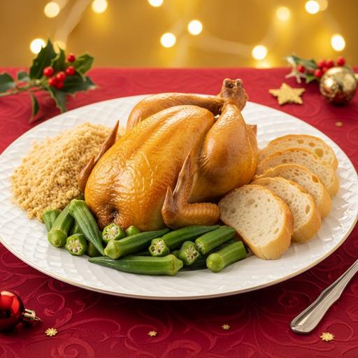 Frango com quiabo e farofa