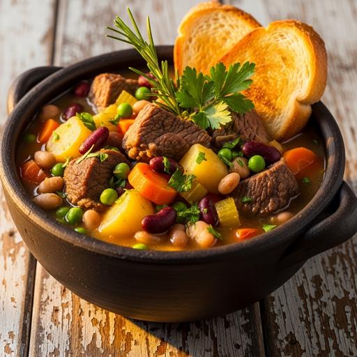 Prato reconfortante com carne, legumes e feijão, perfeito para dias frios. Tradicional, saboroso e cheio de sabor caseiro.