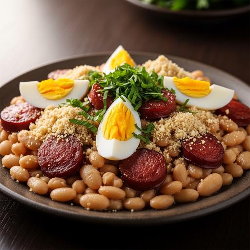 Um prato brasileiro clássico e reconfortante, feito com feijão, linguiça, farinha de mandioca e ovos, ideal para dias frios.