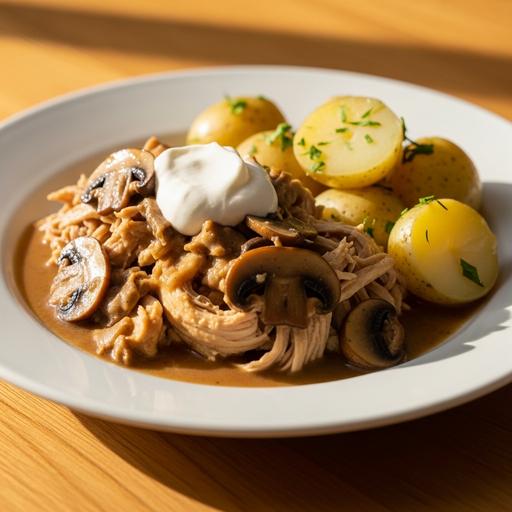 Receita cremosa e saborosa com frango desfiado e molho de cogumelos, ideal para dias frios.