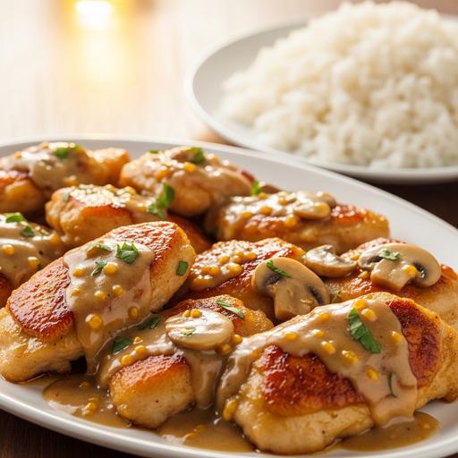 Uma receita saborosa e reconfortante que combina peito de frango suculento com um molho cremoso de cogumelos e ervas aromáticas, ideal para um jantar requintado.