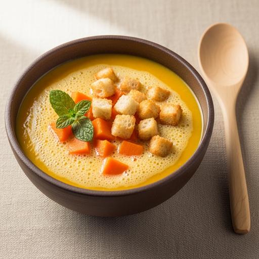 Uma sopa cremosa e reconfortante, perfeita para os dias mais frios. Leve, saudável e cheia de sabor, essa receita combina abóbora, cenoura e gengibre para uma explosão de nutrientes.