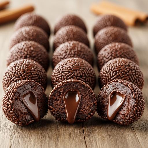 Docinho brasileiro cremoso e doce, feito com leite condensado, cacau em pó e manteiga, recheado com gotas de chocolate derretido. Ideal para festas e lanches.