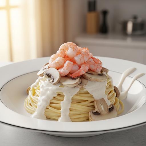 Espaguete ao Molho Cremoso de Camarão e Cogumelos