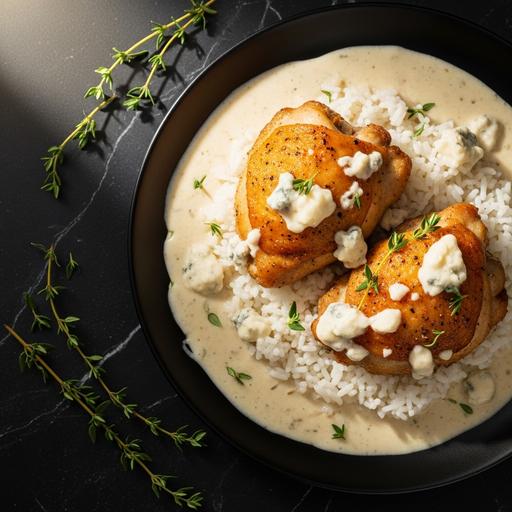 Um prato requintado de frango acompanhado por um molho cremoso de gorgonzola, ideal para noites especiais. Rico, saboroso e com toque gourmet.