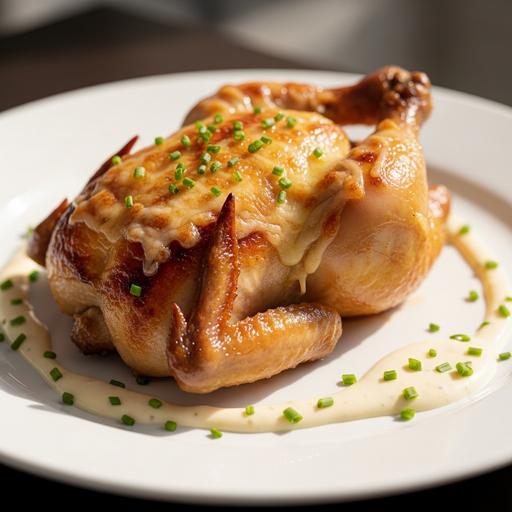 Pré-aqueça o forno a 180°C. Tempere 500g de peito de frango com sal, pimenta e 1 dente de alho amassado. Em uma frigideira, doure 50g de manteiga, adicione 200g de queijo catupiry e 100ml de creme de leite. Misture até formar um molho cremoso. Cubra o frango com o molho, transfira para um pirex e asse por 25 minutos. Finalize com cebolinha verde picada.