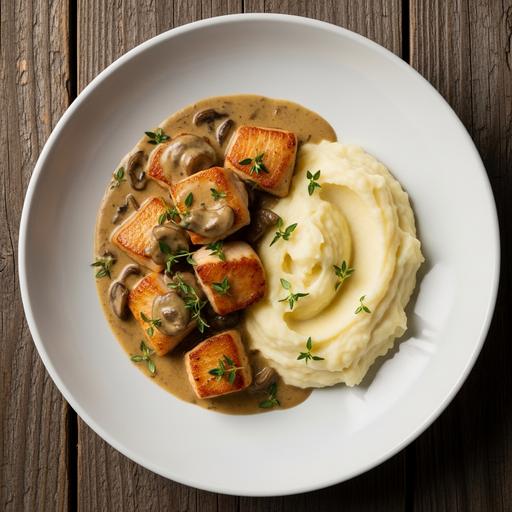 Receita cremosa e saborosa que combina peito de frango com molho de cogumelos e batatas, ideal para servir em dias frios ou como prato principal de almoço.