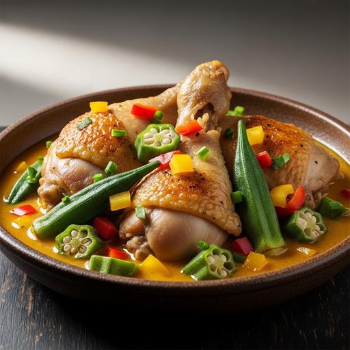 Uma deliciosa combinação de frango suculento, quiabo crocante e um molho saboroso de pimentão, ideal para um jantar caseiro e cheio de sabor brasileiro.