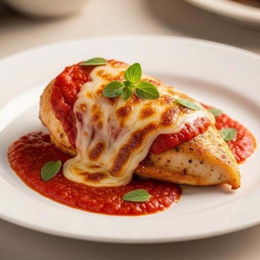 Tempere as peitas de frango com sal e pimenta. Passe-as primeiro na farinha de trigo, depois no ovo batido e finalmente no queijo ralado e pão ralado. Em uma frigideira antiaderente, aqueça o azeite e doure os pedaços de frango até ficarem dourados. Transfira para uma assadeira, cubra com molho de tomate caseiro e fatias de mussarela. Polvilhe queijo parmesão ralado e folhas de orégano fresco. Leve ao forno preaquecido a 180°C por 20 minutos até o queijo derreter e dourar levemente. Sirva quente com arroz branco ou batatas fritas.