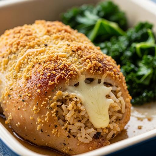 Receita clássica de frango recheado com arroz e queijo, saborosa e reconfortante, perfeita para um almoço em família.