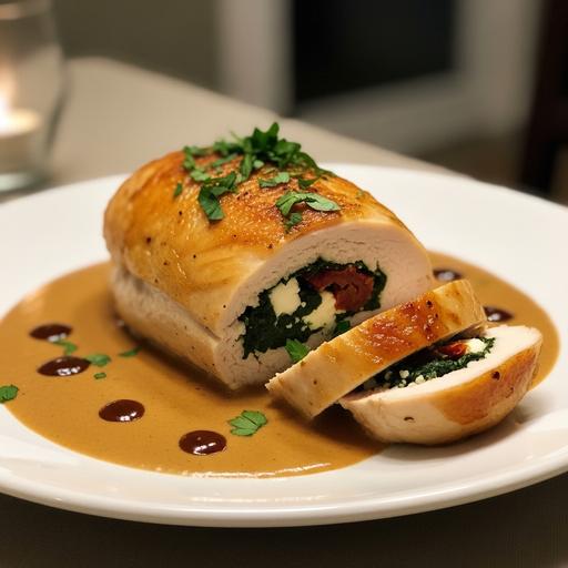 Frango recheado com molho de cogumelos
