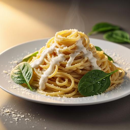 Macarrão com Molho Branco e Espinafre