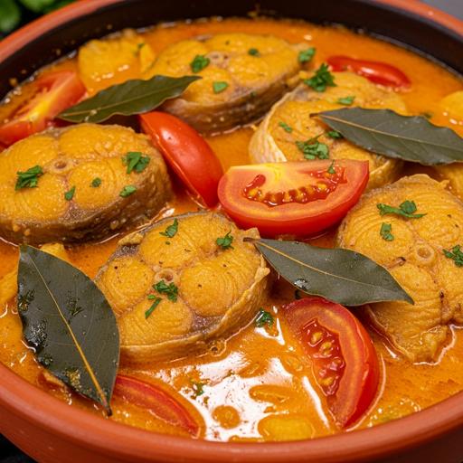 Receita tradicional baiana com peixe, tomate, coco e dendê, rica em sabor e aroma catarinense.