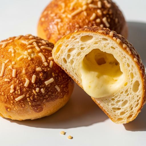 Receita brasileira clássica de pão de queijo, versão cremosa com recheio de queijo derretido, ideal para lanches rápidos ou brunches casuais.