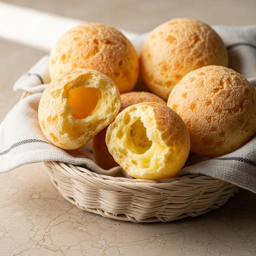 Misture 500g de farinha de mandioca polvilho doce, 2 ovos batidos, 1 xícara de água morna e 1 colher de chá de sal. Adicione 200g de queijo ralado e misture até formar uma massa homogênea. Modele bolinhas com as mãos e coloque em forno preaquecido a 200°C por 20 minutos ou até dourar. Deixe esfriar por 5 minutos antes de servir.