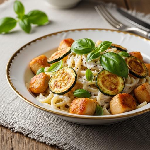 Uma receita saborosa e equilibrada que combina proteína magra com legumes, ideal para uma refeição leve e prática. A abobrinha confere crocância e um toque refrescante ao molho cremoso.