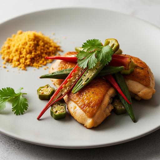 Receita típica do Nordeste brasileiro, combinando sabor suave do frango com o toque picante do quiabo e crocância da farofa. Confortável e rica em sabores regionais.